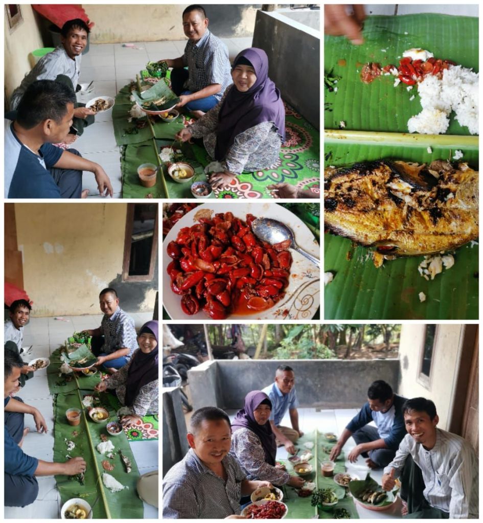 Nikmatnya disuguhi makan dialasi daun pisang; dg oseng kulit melinjo, ikan sebelah bakar, ikan kembung, ikan layur, ikan asin manis, lalaban, sambal kacang, sambal terasi, sayur asam; dilanjut dg asam kranji & teh panas kental di rmh Kel. Syukara -alumni Ar-Rahmah, Kp. Bojong Bunar, Ds. Kamasan, Kec. Cinangka, Kab. Serang, Banten.